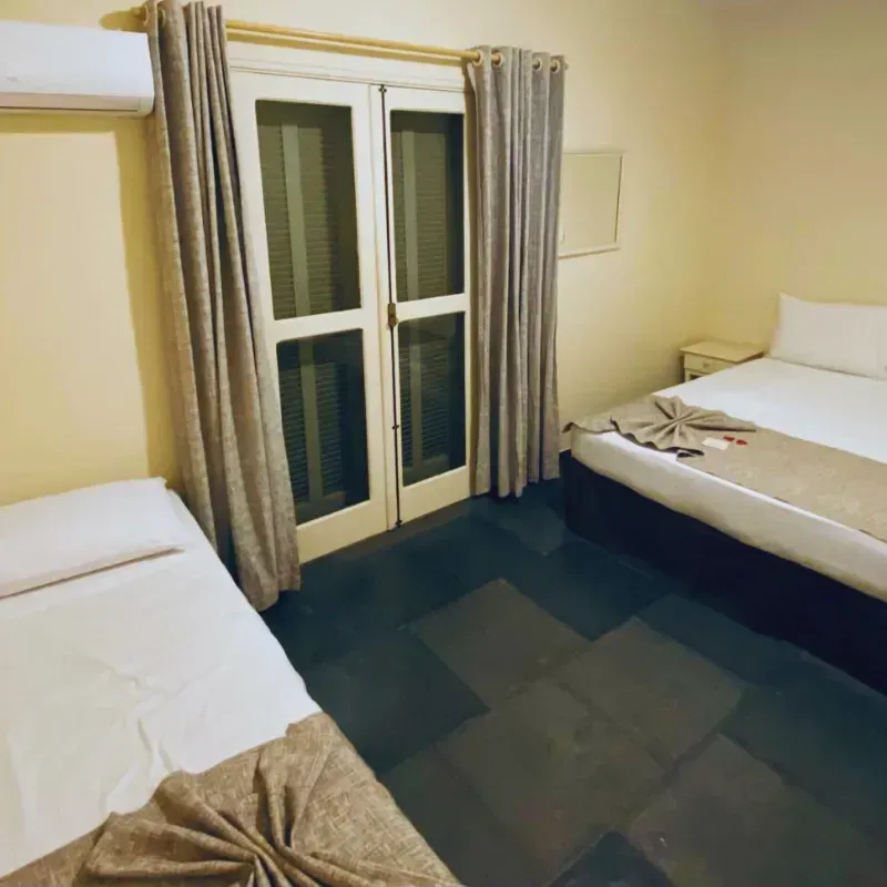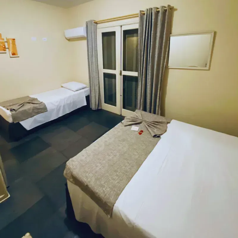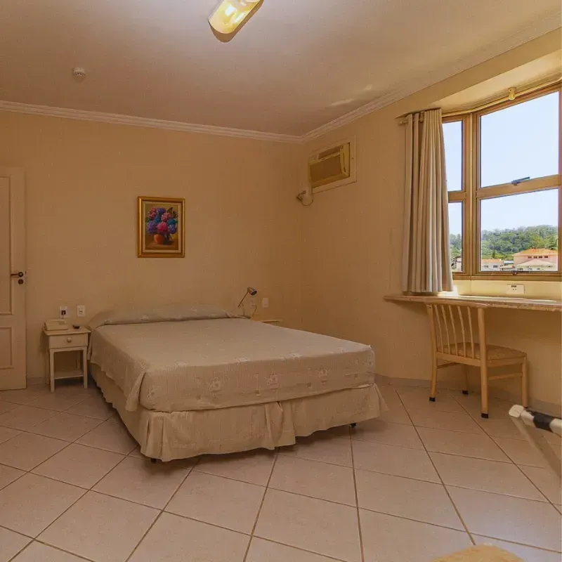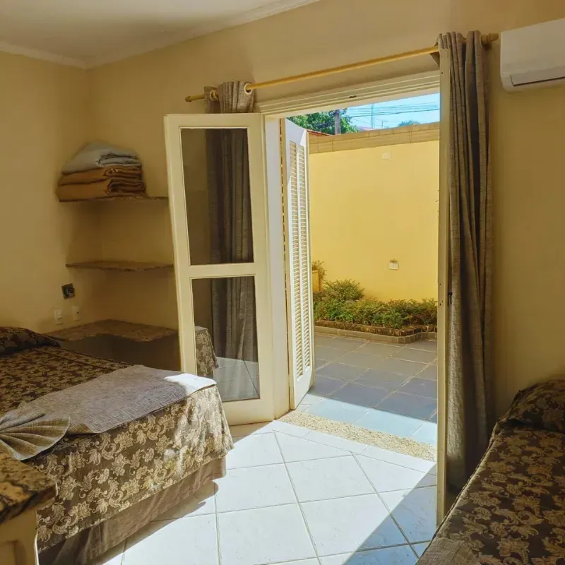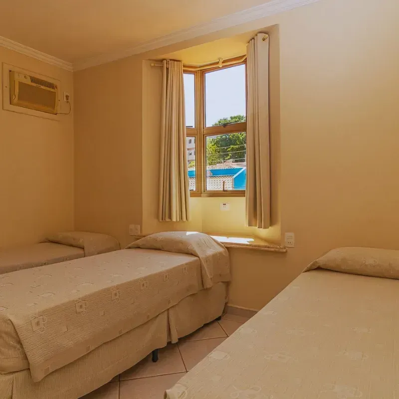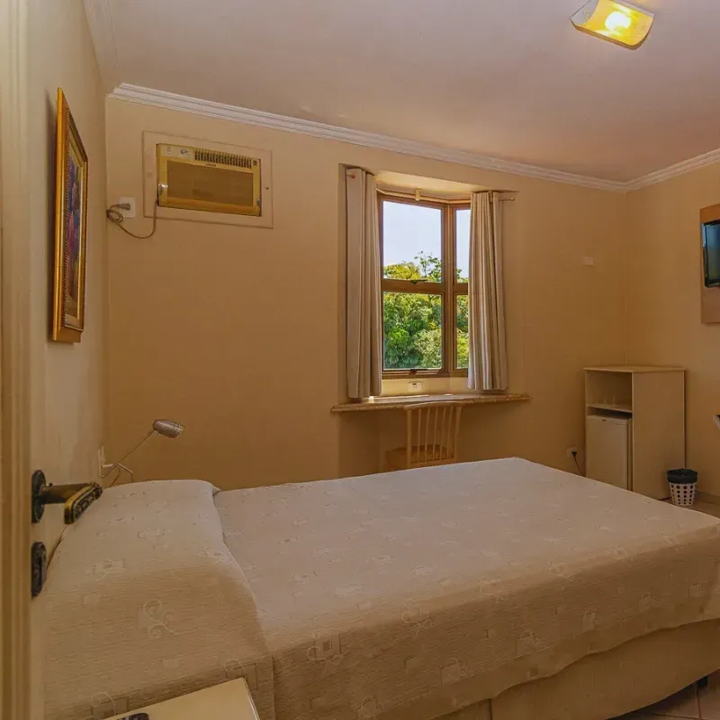 Perfeita para pequenas famílias ou grupos de amigos, a acomodação oferece versatilidade e bem-estar com vista para a cidade ou jardins.